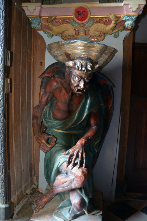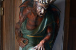 Przy wejściu do kościoła odwiedzających wita nietypowa jak na kościół rzeźba: